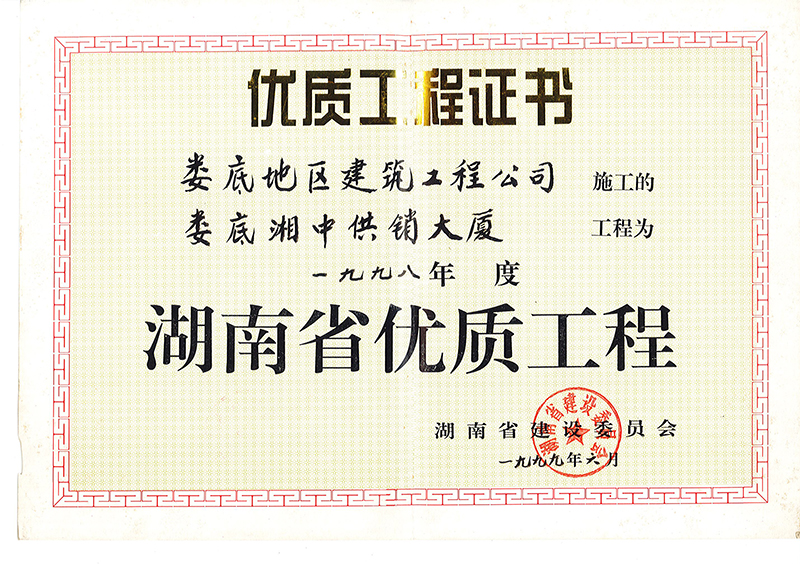 1998年度省優(yōu)質(zhì)工程(婁底湘中供銷大廈)