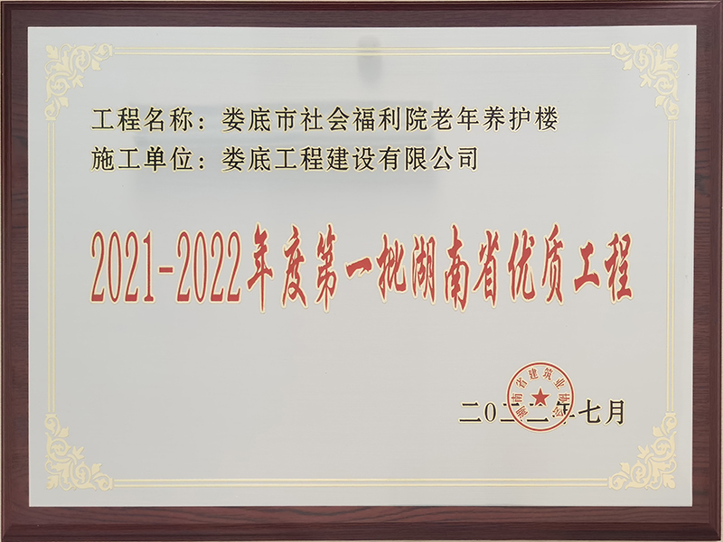 2021-2022年度第一批湖南省優(yōu)質(zhì)工程獎牌(婁底市社會福利院老年養(yǎng)護(hù)樓)