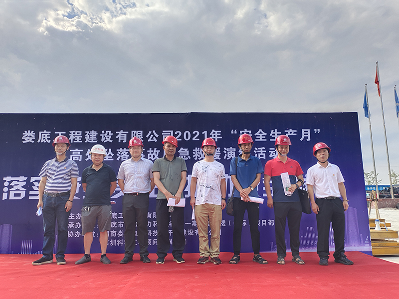 為進(jìn)一步提高公司安全管理水平,規(guī)范公司安全生產(chǎn)過程的管理工作,本著"安全第一、預(yù)防為主、綜合治理"的安全管理方針。 加強(qiáng)建筑工地應(yīng)對(duì)突發(fā)事件的處理能力,提高全員安全意識(shí),切實(shí)掌握應(yīng)急救援的的技能、技巧,讓員工在事故發(fā)生時(shí)將傷害減少到最低,同時(shí)為響應(yīng)“學(xué)黨史,辦實(shí)事”的精神,公司和公司黨支部特組織了一次高處墜落事故應(yīng)急救援演練活動(dòng)。婁底經(jīng)開區(qū)住建局童韜先生、李愛民先生、李俊先生、雷海仁先生,建設(shè)單位現(xiàn)場(chǎng)負(fù)責(zé)人曾彪先生,監(jiān)理單位總監(jiān)柯又華先生,婁底工程建設(shè)有限公司副總經(jīng)理彭洪偉、顏克靈出席了本次演練活動(dòng),婁底市生態(tài)電力科技谷A區(qū)一期一標(biāo)項(xiàng)目部全體人員,公司各在建項(xiàng)目負(fù)責(zé)人、關(guān)鍵崗位人員參加了此次演練活動(dòng)。