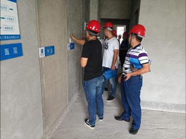 觀摩代表們來到施工現(xiàn)場,認(rèn)真觀看了企業(yè)及項(xiàng)目簡介視頻、機(jī)噴砂漿工藝視頻、常見質(zhì)量問題治理的模型示范樣板區(qū)、工程實(shí)體質(zhì)量樣板區(qū)等。輕質(zhì)混凝土砌塊砌筑、構(gòu)造柱及窗臺(tái)壓頂留置、門窗洞口弱框架、內(nèi)外墻機(jī)噴抹灰、外墻內(nèi)保溫、屋面防水、水電安裝等工程的每道環(huán)節(jié)、工藝標(biāo)準(zhǔn)都用標(biāo)牌標(biāo)注得清清楚楚。并了解到我司在施工前期的創(chuàng)優(yōu)策劃,施工過程中堅(jiān)持“事前交底、事中控制、事后驗(yàn)收”等一些好的管理方法。觀摩代表們紛紛表示,此次觀摩為進(jìn)一步深化工程常見質(zhì)量問題防治、推進(jìn)質(zhì)量標(biāo)準(zhǔn)化、工程創(chuàng)優(yōu)積累了寶貴經(jīng)驗(yàn)。我司主要負(fù)責(zé)人、技術(shù)人員、講解員與觀摩代表們分享了在工程質(zhì)量常見問題專項(xiàng)治理等方面一些好的工作經(jīng)驗(yàn)和做法。
