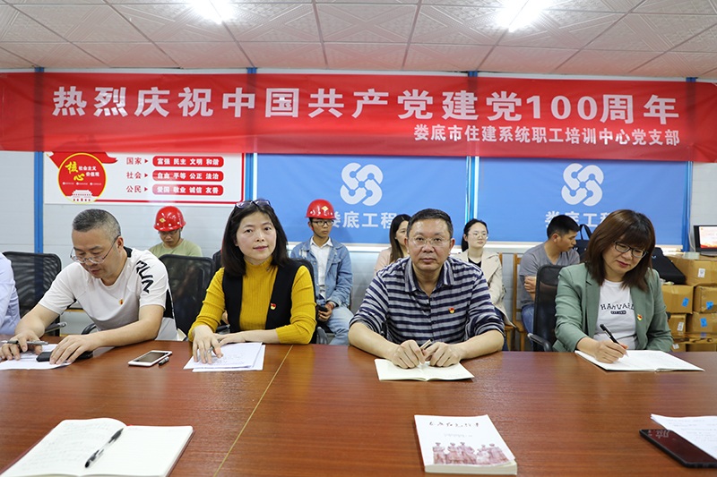 2021年5月25日下午,為慶祝中國共產(chǎn)黨成立100周年,婁底市住建系統(tǒng)培訓(xùn)中心黨支部來到婁底工程建設(shè)有限公司高溪社區(qū)城中村改造工程一期EPC總承包項(xiàng)目部,和項(xiàng)目部臨時黨支部聯(lián)合開展“憶崢嶸歲月,頌百年華誕”的主題黨日活動。2個支部共有18名黨員參加,其他項(xiàng)目部現(xiàn)場管理人員和工友代表共有30多人參加活動。
